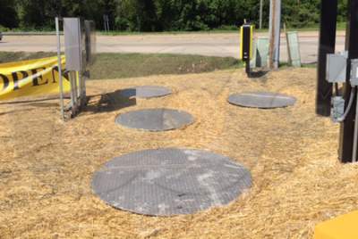 Flat fiberglass tops on Packaged Metering Manholes provide a low visual profile without the need for a grade ring / frame / cover system. All fiberglass construction means the tops are corrosion-resistant and extremely strong – capable of withstanding pedestrian foot traffic and the occasional riding mower.