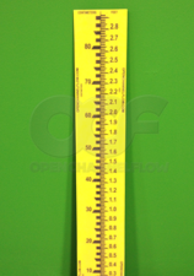 An additional feature of staff gauges is they can also be provided in flow increments - either with level units or in lieu of them. This feature means that spot determinations is the flow rate can be made without the need to use look up tables or flow charts. So long as the flow can be determined by a single level measurement (as is the case with a flume or weir under free-flow conditions) a properly increments staff gauge provide the spot flow rate indication.