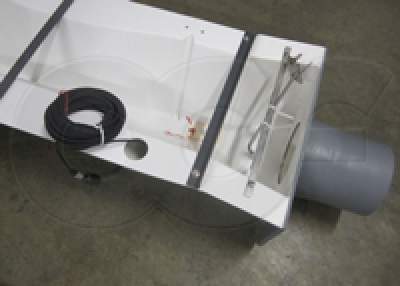 After the flow has gone over the crest of the weir plate, it can freely spill off the end of the weir box, or it can be directed out through a pipe connection (horizontally or vertically).