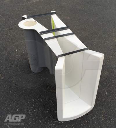 The staged end adapters mentioned above are specially curved end connection that allow the Parshall flume to be slid into place in a manhole and which eliminate there need to form a transition into / out of the flume.