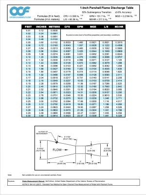 The free flow discharge table for the 1-inch Parshall is available for download.