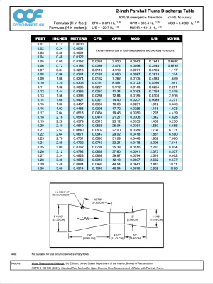 The free flow discharge table for the 2-inch Parshall is available for download.