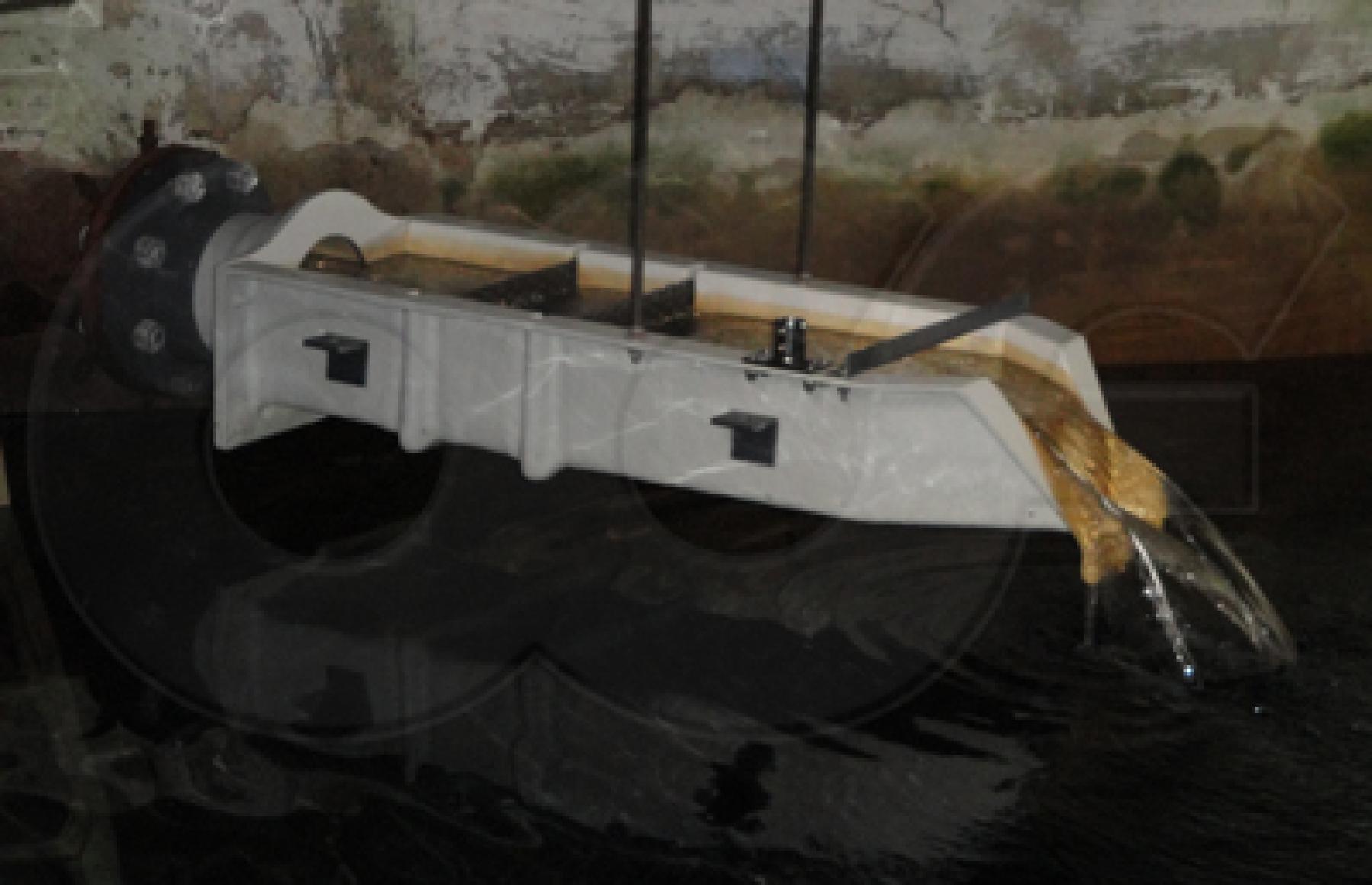 - The narrow opening of the flume is set downstream.